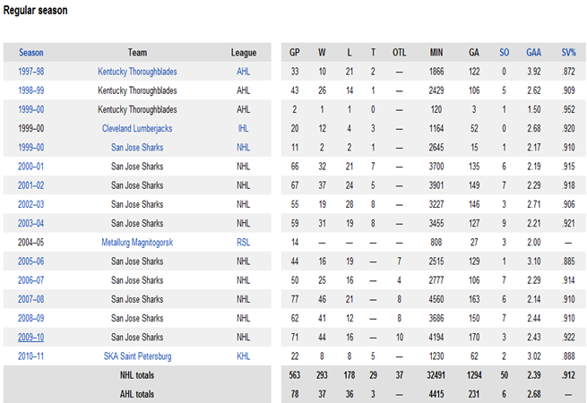 SV% - úspešnosť zásahov v % SO - čisté konto GA - obdržané góly W - výhra L - prehra